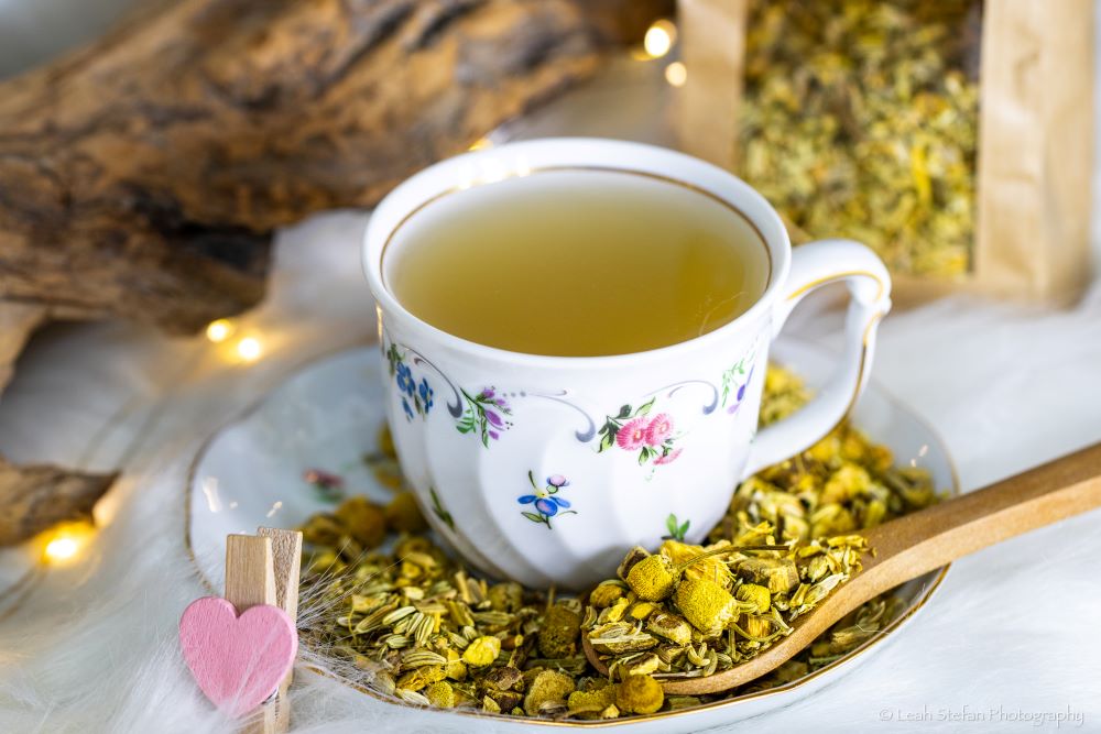 Verwendung: 1-2 TL mit kochendem Wasser (ca. 250ml) überbrühen & 5-10 Min. ziehen lassen.